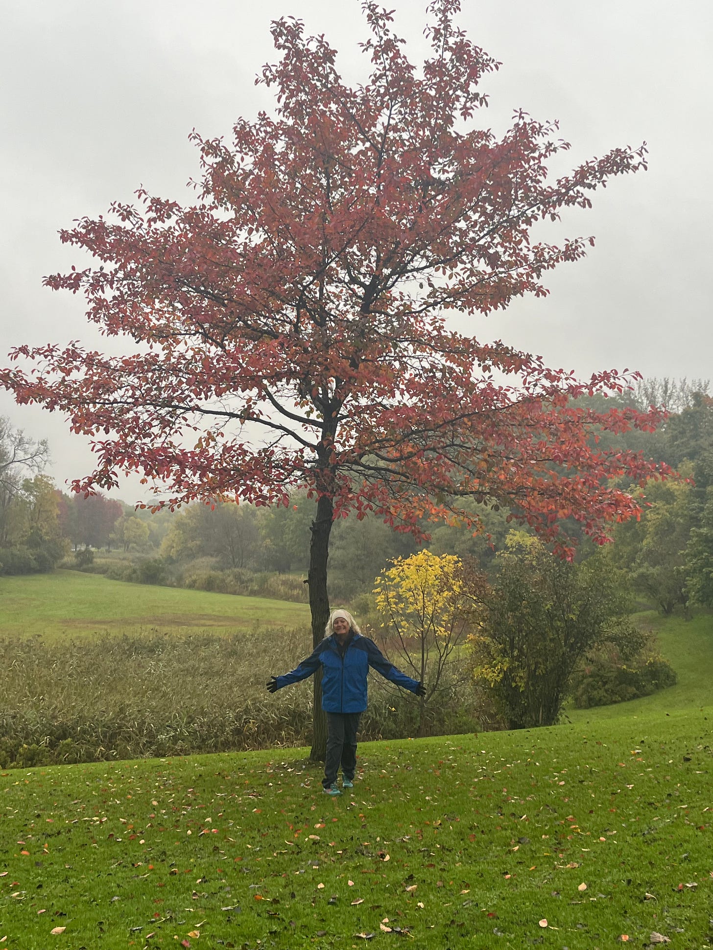 Hiking in the rain and then standing under a beautiful tree to send a photo to my Mom.
