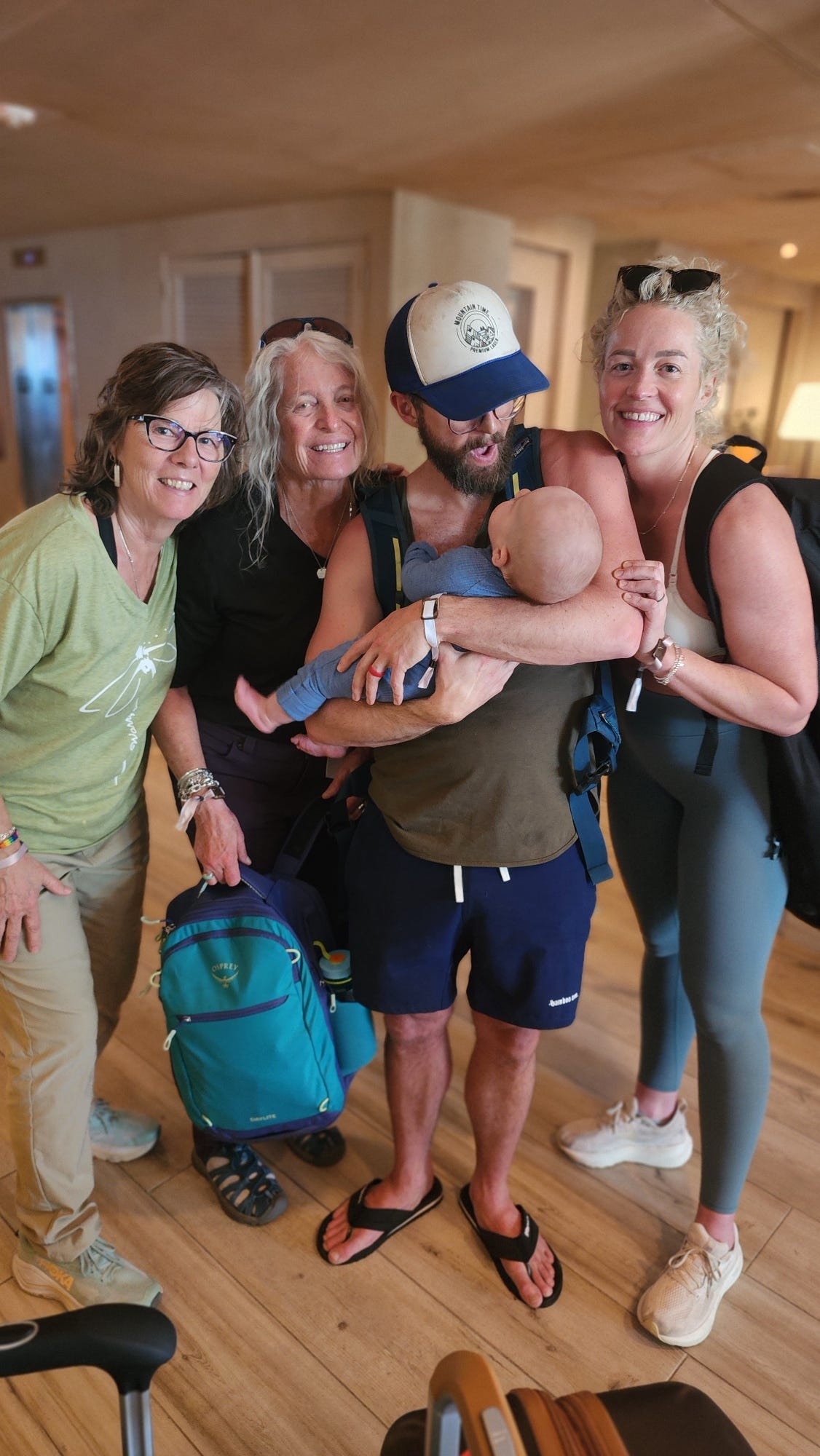 We had just stepped into the lobby of the hotel, absolutely exhausted, and glad to be out of the damn airport, when I looked up and saw my son walking out of the elevator. We had no idea he and his family would be there, and it was a reunion and a moment I will never forget. Andrew, my son, had yet to meet his nephew, so there was that, and then his son, Quill, got to meet his cousin for the first time, and I have not stopped crying since that day. To top it off, Andrew, Becca, and Quill were staying in the room next to us. What are the chances?