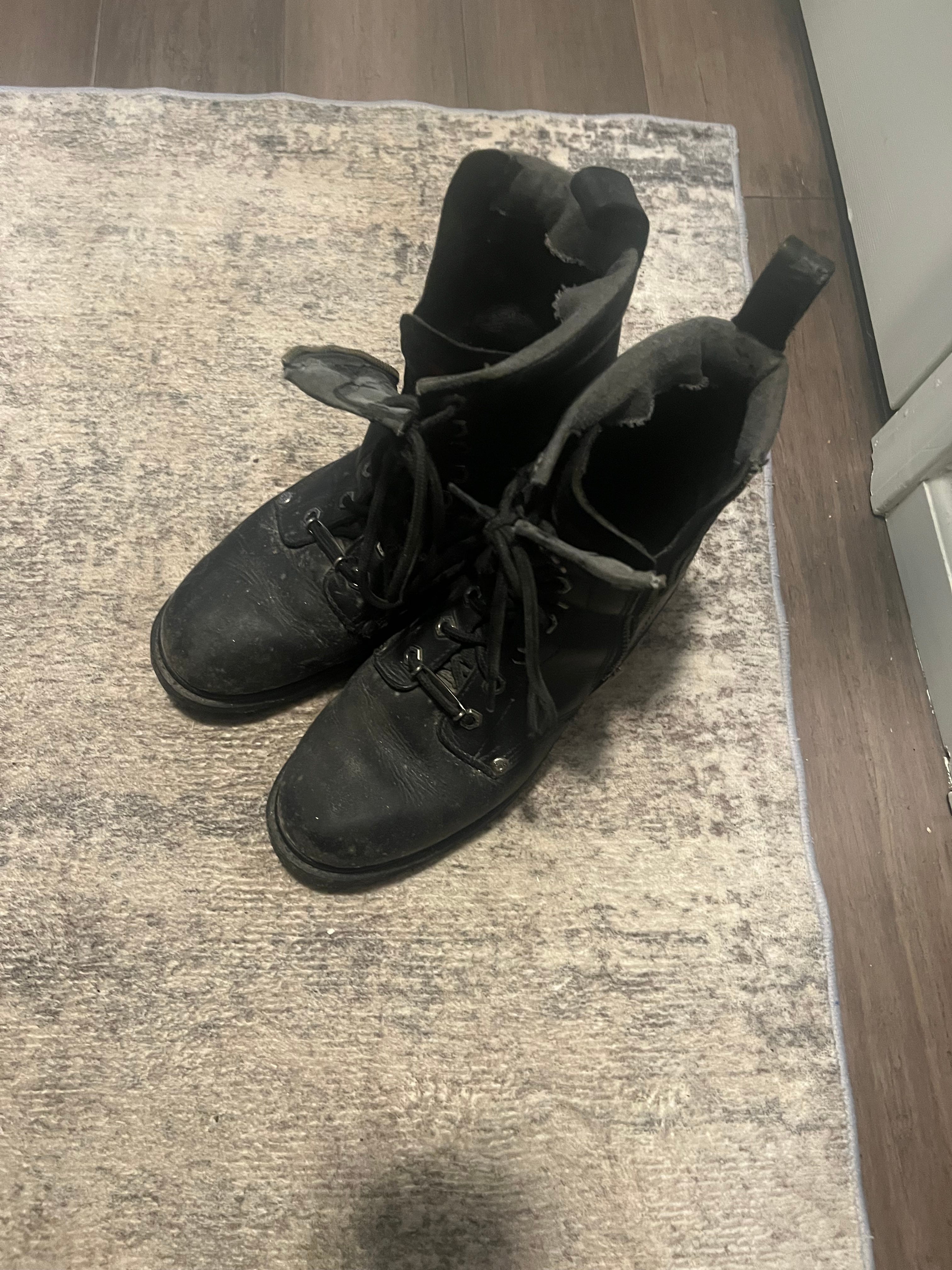 Those are my old motorcycle boots up there that I cannot bring myself to get rid of. First of all, they are very cool looking, still fit, and are comfy. If I ever have to bear arms, I can throw them on or kick ass with the best of them. Sometimes I drag out my leather cycle jacket too and swagger out someplace, but eventually my bunion or the reality of wearing heavy boots slaps me across the face.